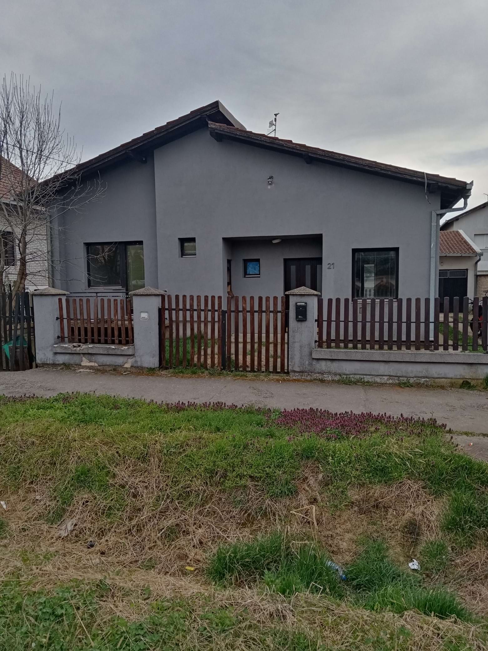 | Kratak Opis: | Prizemna kuća od 121 m2 (na dva nivoa i suterenom) sa dvorišnim stanom od 50 m2, na placu od 453 m2. Struktura prostora: I nivo: predsoblje sa wc-eom i ulazom u suteren-garažu, dnevni boravak sa trpezarijom i izlazom na dvorišnu terasu, kuhinja. II nivo: predprostor, kupatilo i tri sobe. Podovi: parket, laminat i keramika. Stolarija drvena; izolacija: stiropor 8 cm; Gas. Dvorišni stan: predsoblje, kupatilo, dnevni boravak sa kuhinjom, soba. Podovi: laminat i keramika; stolarija drvena; gas. Garaža od 20 m2 u suterenu kuće. I-1021 |